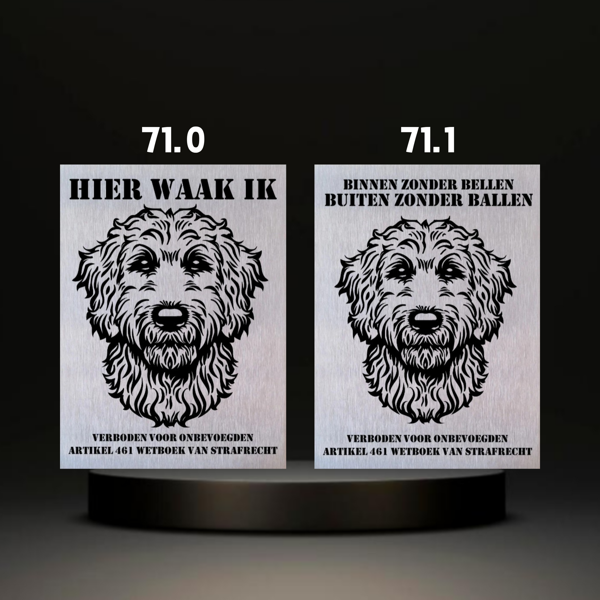Een waakbord is een unieke en persoonlijke manier om uw huis te beschermen en tegelijkertijd een statement te maken. Met lasergraveren kunt u een waakbord creëren dat het ras van uw hond weergeeft, samen met een persoonlijke tekst erboven. Dit maakt het bord niet alleen informatief, maar ook een reflectie van uw liefde voor uw huisdier. Of het nu gaat om een gewaarschuwd bezoek of gewoon een decoratief element, een gepersonaliseerd waakbord voegt een speciale touch toe aan uw woning. Bij JF Design kunnen we prachtige, gepersonaliseerde ontwerpen maken die perfect passen bij het karakter van uw hond. Laat uw liefde voor uw viervoeter stralen met een uniek gegraveerd item!